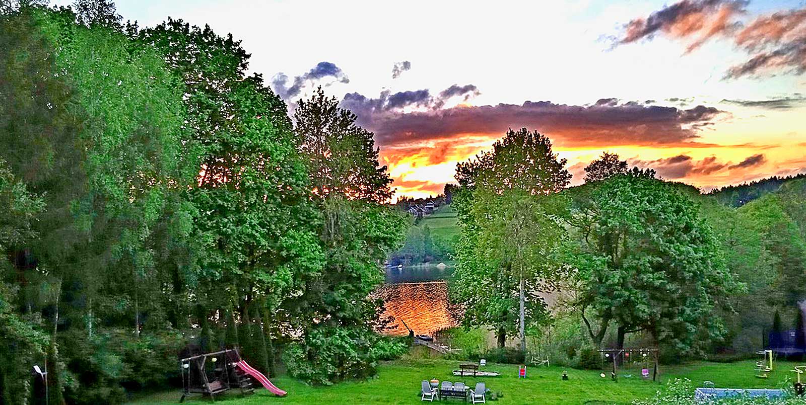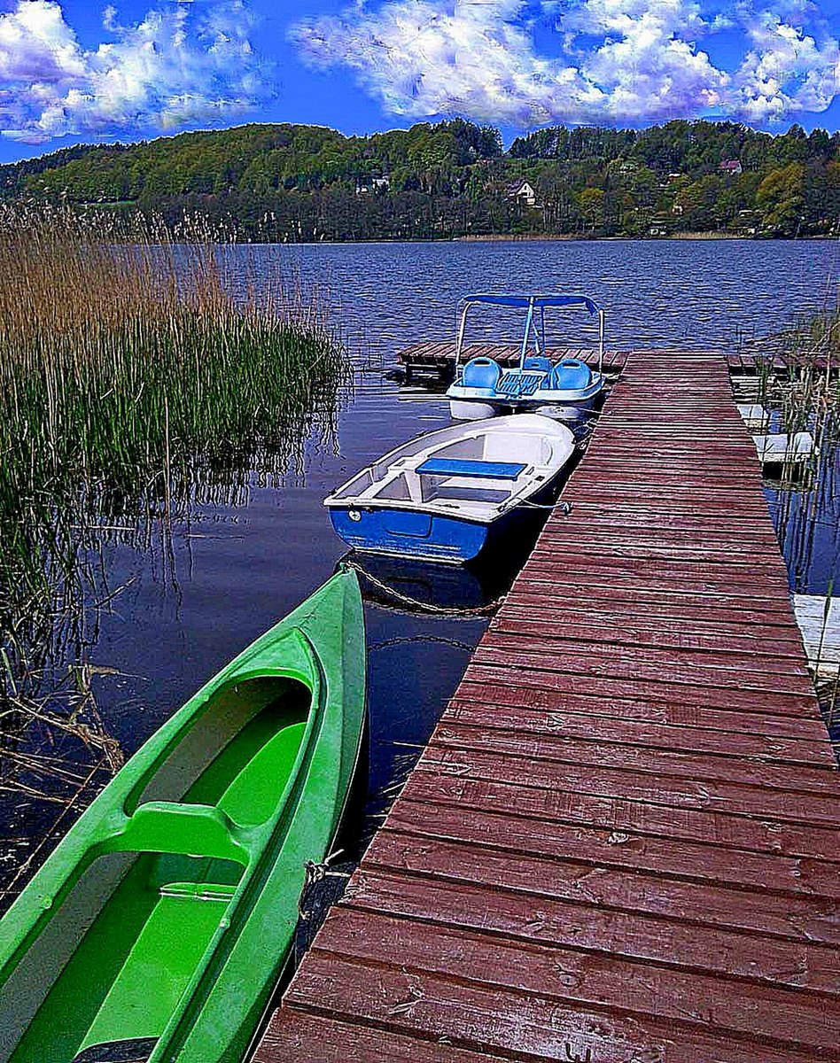 Spokojna tafla wody, śpiew ptaków i poranki nad pomostem – tutaj naprawdę można odetchnąć ciszą Kaszub.